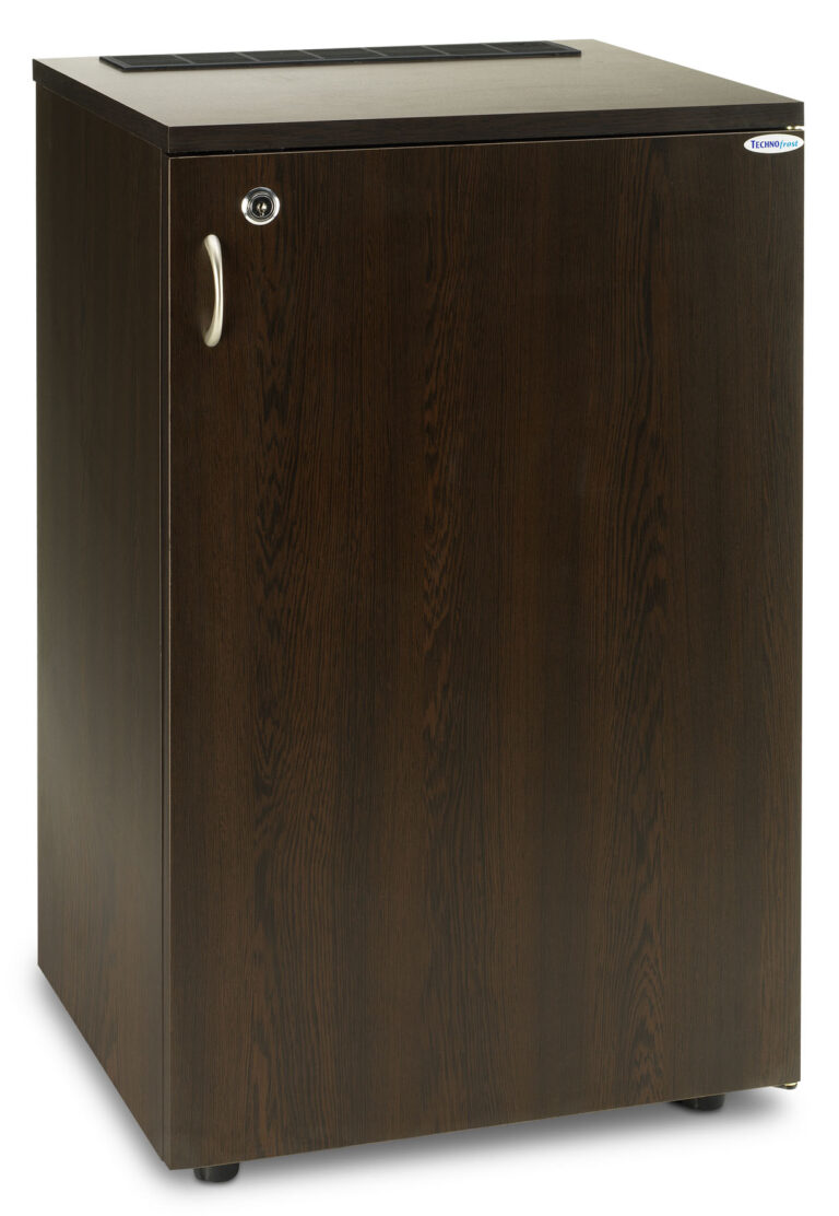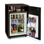 Minibar F40ML u ormariću predstavlja savršeno rješenje za svaki prostor u kojem je potrebna praktičnost i elegancija. Sa svojim modernim dizajnom u boji crnog PVC-a i tamnog oraha, ovaj samostojeći minibar unosi sofisticiranost u enterijer.